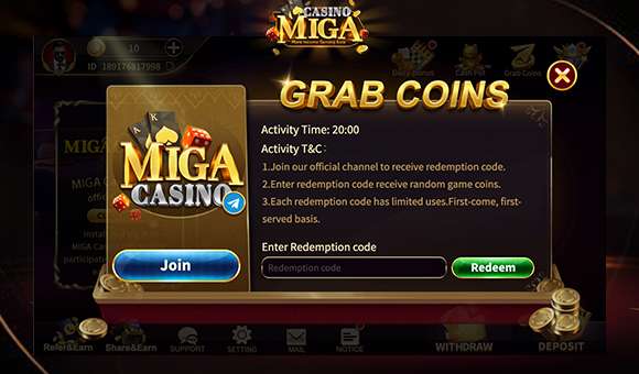 At MIGA Casino, we’re thrilled to offer players daily opportunities to claim FREE game coins through our official Telegram channel! Dive into non-stop gaming action with exclusive redemption codes, limited-time offers, and thrilling rewards. Don’t wait—join now to elevate your gameplay!
