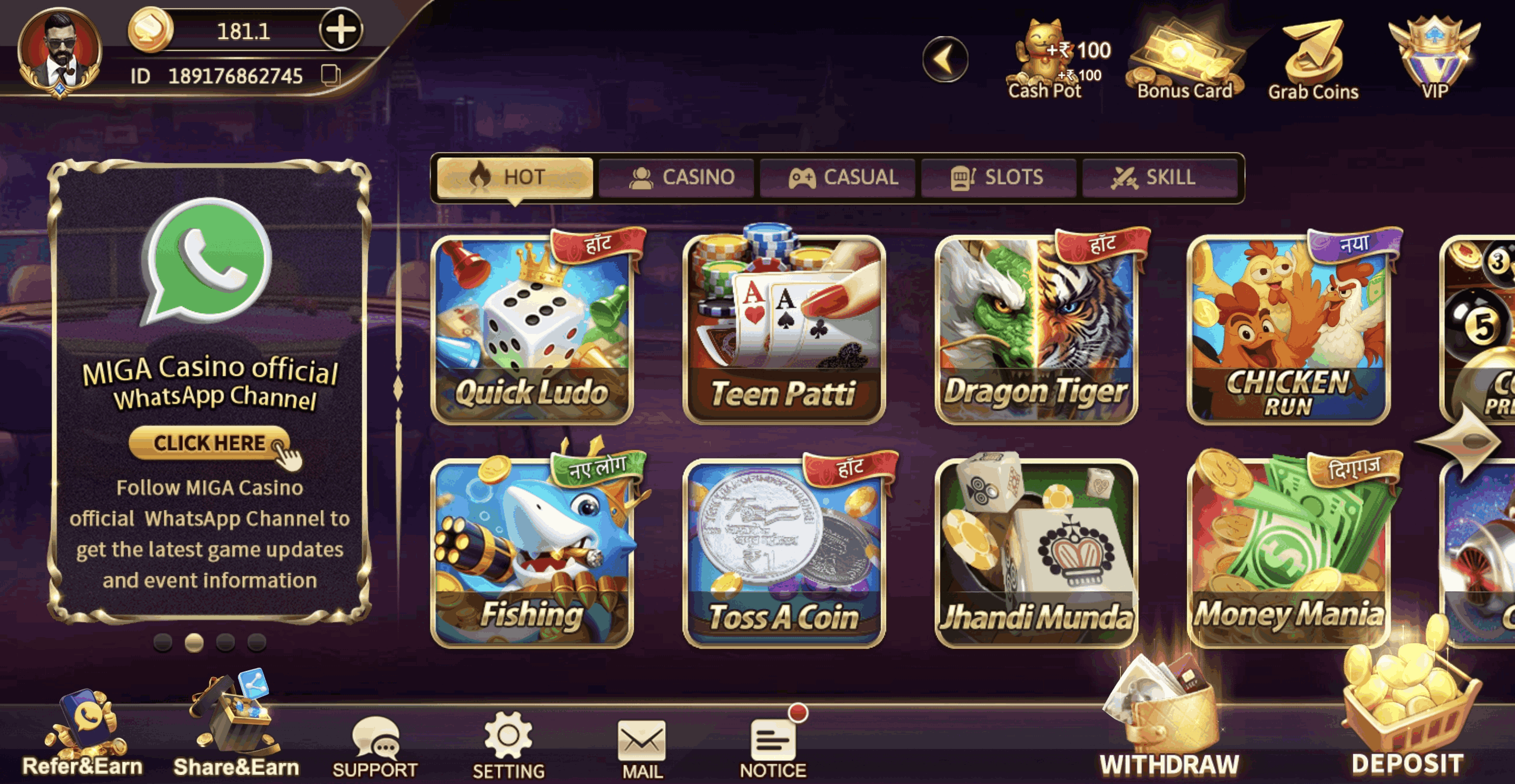 MIGA कैसीनो रिडीम कोड पेज में आपका स्वागत है - प्रीमियम पुरस्कारों को अनलॉक करने का आपका प्रवेश द्वार! चाहे आप नए खिलाड़ी हों या वफादार सदस्य, मुफ्त स्पिन, डिपॉज़िट मैच और कैशबैक ऑफ़र के साथ अपने गेमप्ले को बढ़ावा देने के लिए हमारे विशेष प्रोमो कोड का उपयोग करें। अपने बोनस का दावा करने और जीतना शुरू करने के लिए नीचे दिए गए सरल चरणों का पालन करें!